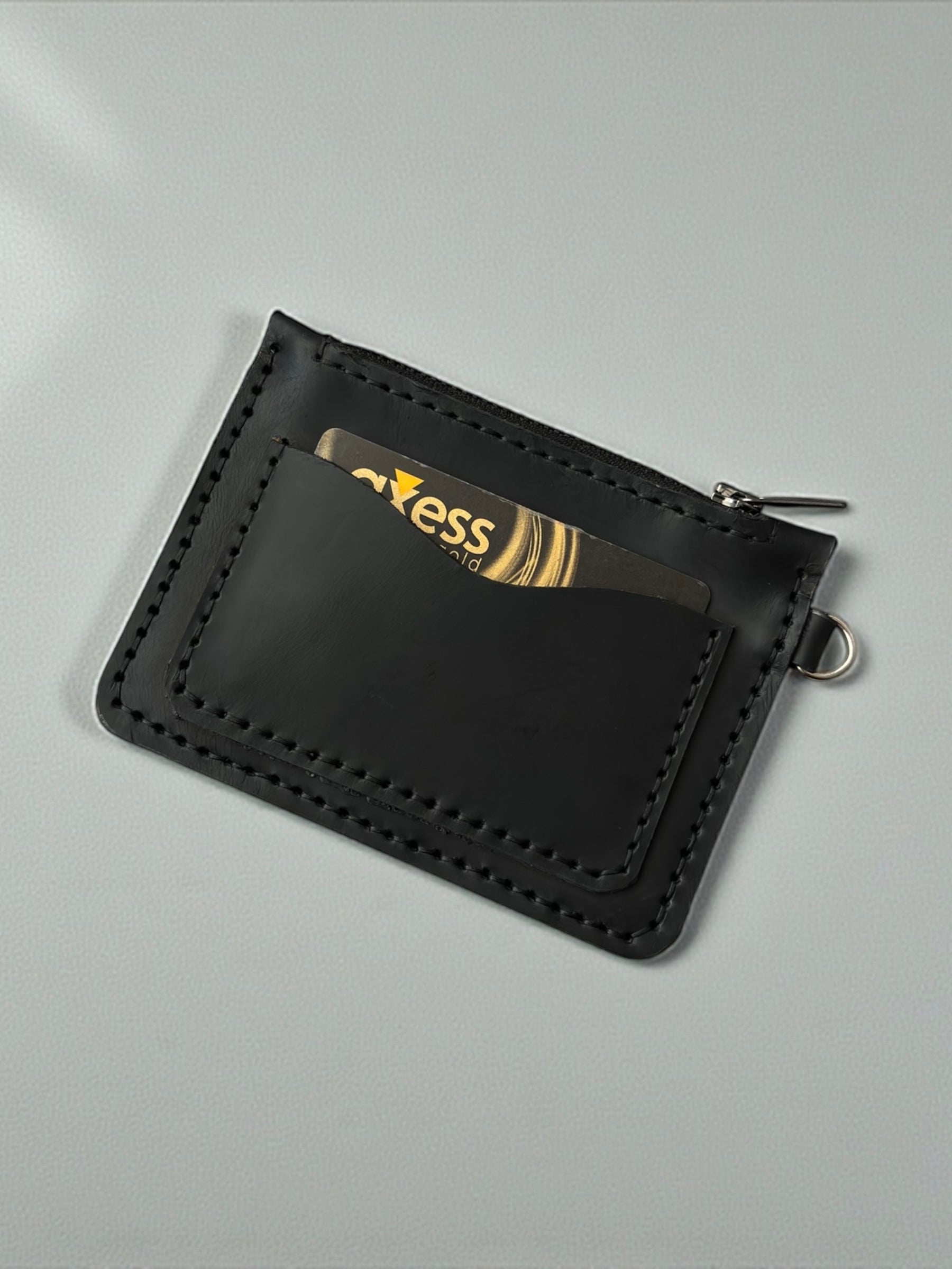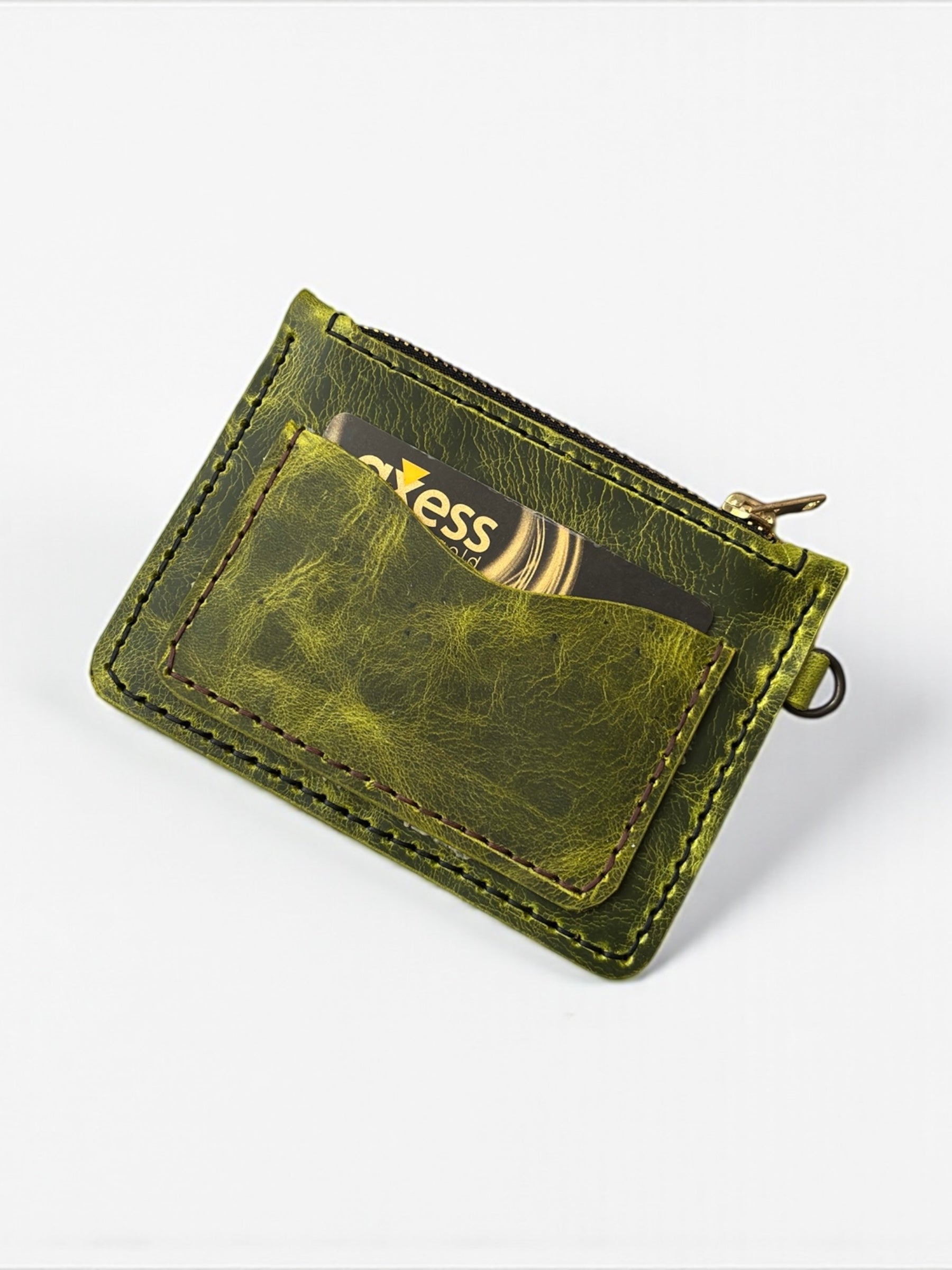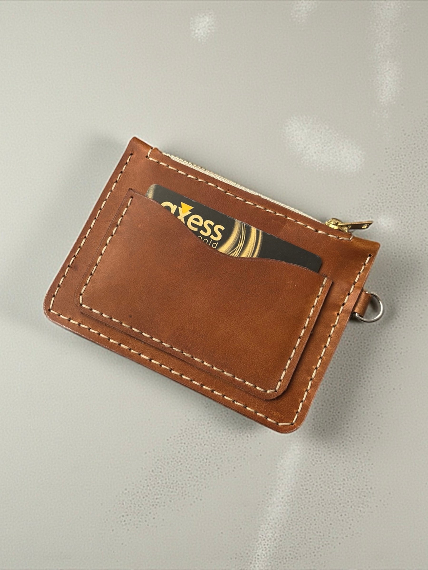 Hakiki deri olup tamamen elçiliği ile üretilmiştir iki adet kart bölmesi bir adet fermuarlı bölmesi mevcuttur.